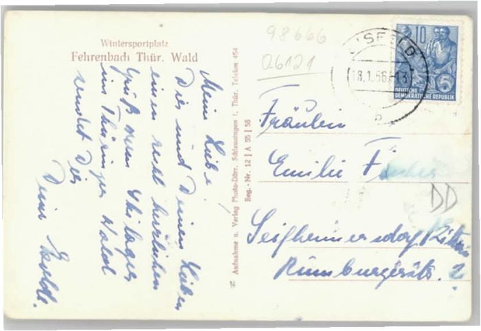 40636078 alte Postkarte Fehrenbach Thueringer Wald postalisch gelaufen KatCode: 11110016069061
