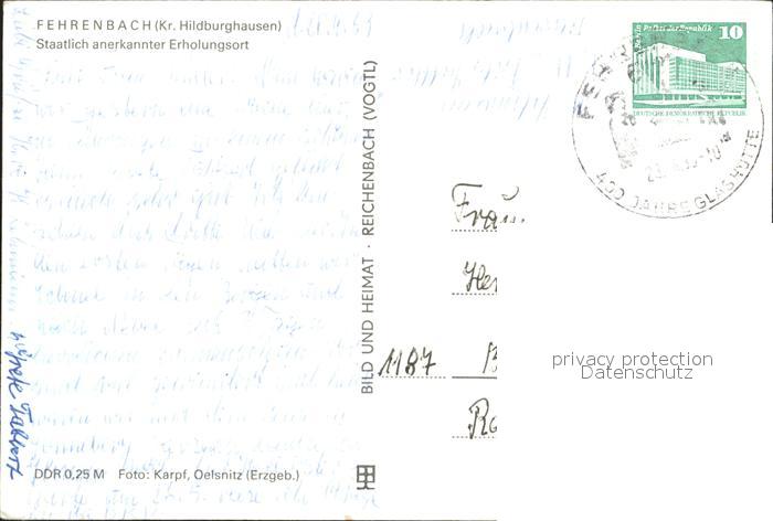 72115605 alte Postkarte Fehrenbach Thueringer Wald Dorf postalisch gelaufen KatCode: 11110016069061