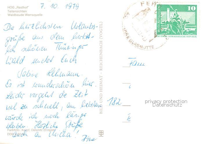 73105418 alte Postkarte Fehrenbach Thueringer Wald HOG Rasthof Teilansichten Waldbaude Werraquelle postalisch gelaufen Erhaltung siehe scans [WerneD78] KatCode: 11110016069061