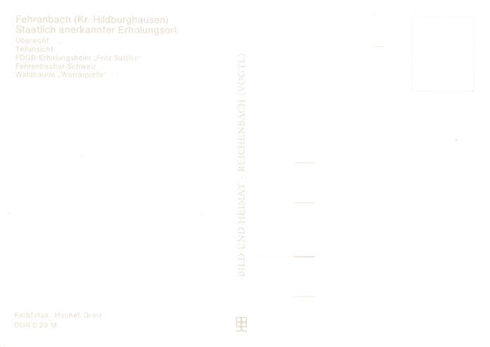 73877243 Fehrenbach Thueringer Wald Panorama Teilansicht FDBG Erholungsheim Fritz Sattler Fehrenbacher Schweiz Waldbaude Werraquelle postalisch nicht gelaufen Erhaltung siehe scans [WerneD78] KatCode: 11110016069061