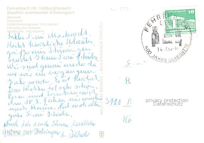 73117090 alte Postkarte Fehrenbach Thueringer Wald Waldbaude Werraquelle FDGB Erholungsheim postalisch gelaufen Erhaltung siehe scans [KathaD81] KatCode: 11110016069061