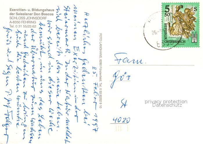 73091529 alte Postkarte Fehring Schloss Johnsdorf postalisch gelaufen Erhaltung siehe scans [KathaD81] KatCode: 11390224060410