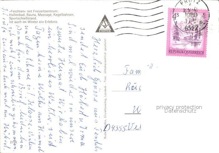 72236886 alte Postkarte Feichten Kaunertal Freizeitzentrum postalisch gelaufen Erhaltung siehe scans KatCode: 11390