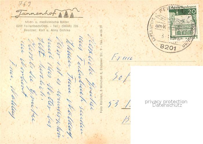 73202218 alte Postkarte Feilenbach Tannenhof Kirche postalisch gelaufen Erhaltung siehe scans [FriedD77] KatCode: 11110009163000