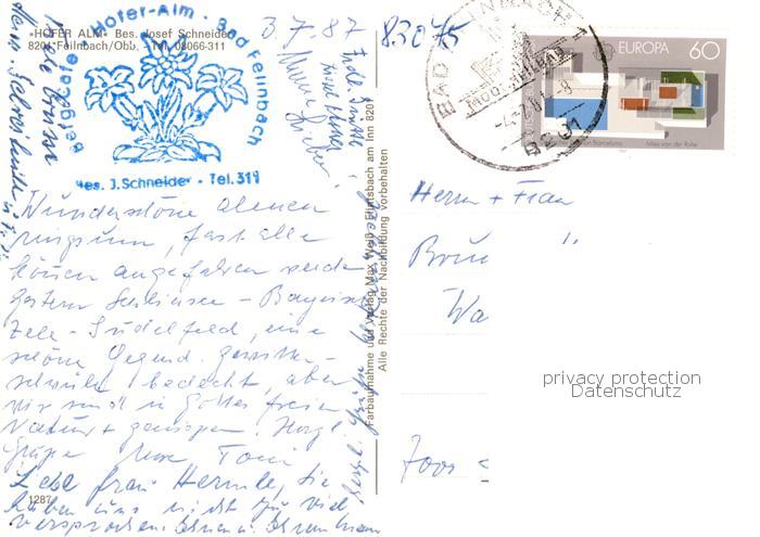 73845201 alte Postkarte Feilnbach Bad Hofer Alm Terrasse Panorama Garten postalisch gelaufen Erhaltung siehe scans [WerneD78] KatCode: 11110009187129