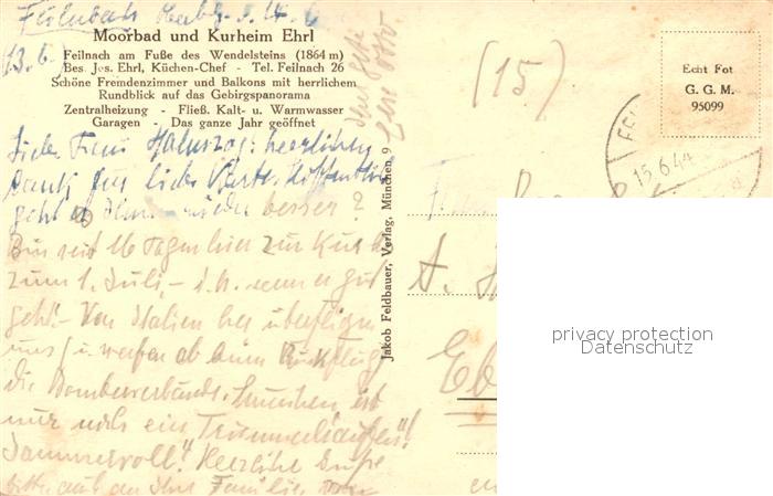 73369184 alte Postkarte Feilnbach Moorbad Kurheim Ehrl postalisch gelaufen Feldpost – Stempel Erhaltung siehe scans [KathaD81] KatCode: 11110009182112