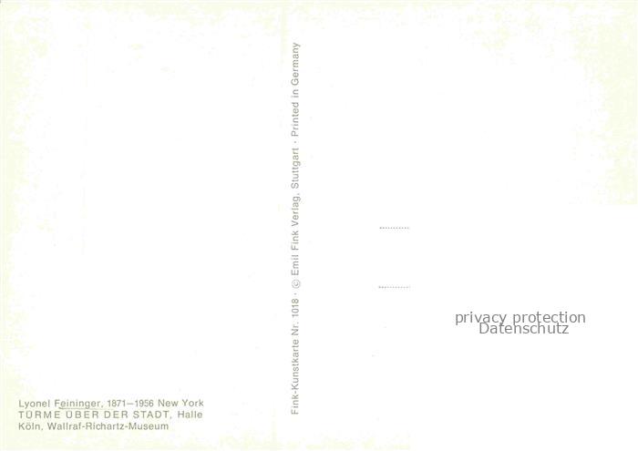 74091802 FEININGER Lyonel Kuenstlerkarte Tuerme ueber der Stadt Koeln postalisch nicht gelaufen Erhaltung siehe scans [SanaeD93] KatCode: 22240000003200