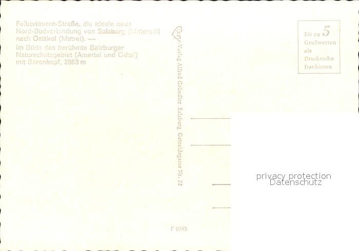 72092999 Felbertauernstrasse mit Baerenkopf postalisch nicht gelaufen Erhaltung siehe scans KatCode: 11390322050613