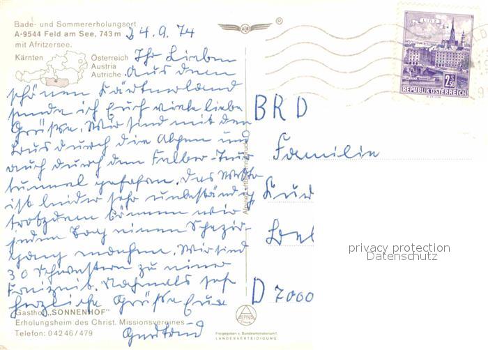 72875064 alte Postkarte Feld See Bade und Sommererholungsort Afritzersee Alpen Fliegeraufnahme postalisch gelaufen Erhaltung siehe scans [FriedD77] KatCode: 11390211020708
