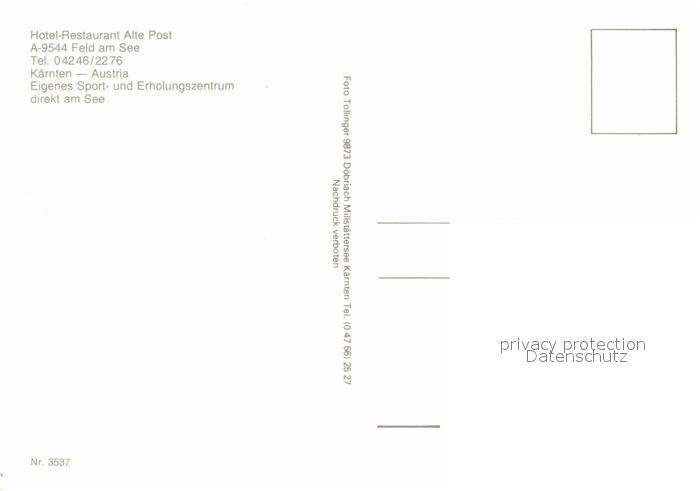 72627542 Feld See Hotel Restaurant Alte Post postalisch nicht gelaufen Erhaltung siehe scans [FriedD77] KatCode: 11390211020708