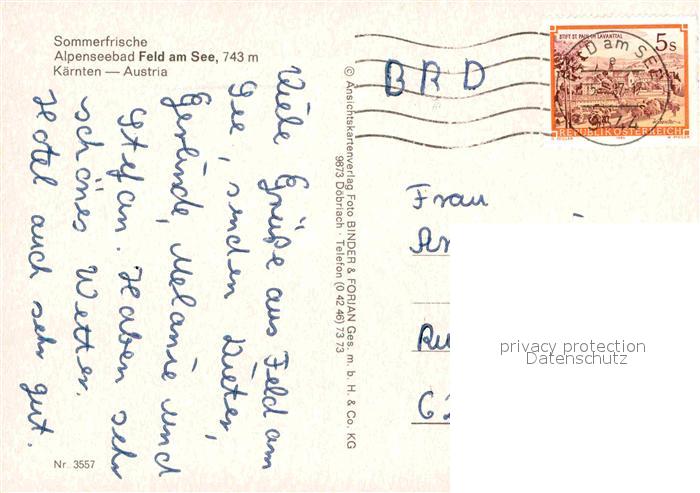 72823294 alte Postkarte Feld See Sommerfrische Alpenseebad Fliegeraufnahme postalisch gelaufen Erhaltung siehe scans [FriedD77] KatCode: 11390211020708