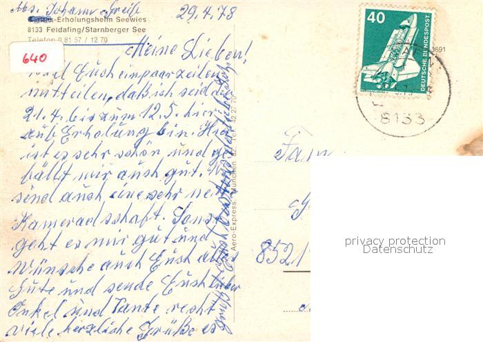 73159744 alte Postkarte Feldafing Caritas Erholungsheim Seewies postalisch gelaufen Erhaltung siehe scans [FriedD77] KatCode: 11110009188118