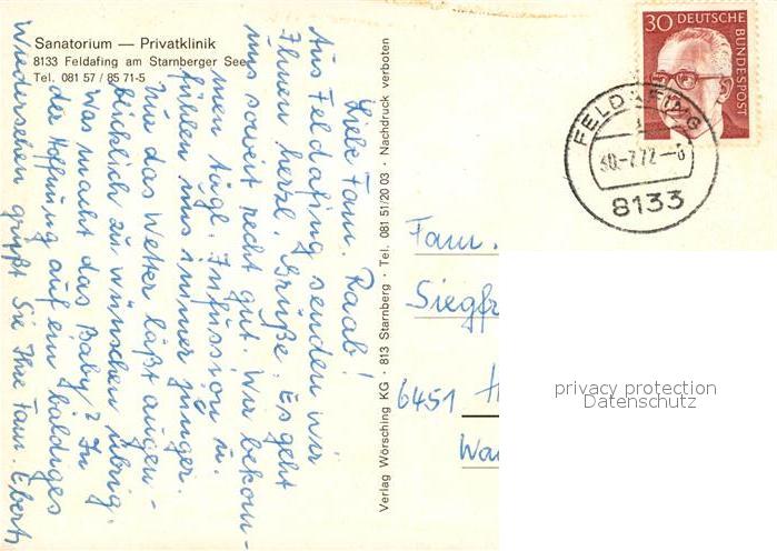 73204206 alte Postkarte Feldafing Sanatorium Privatklinik postalisch gelaufen Erhaltung siehe scans [NatalD47] KatCode: 11110009188118
