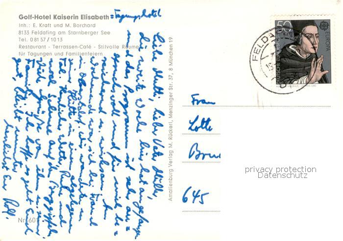 73651729 alte Postkarte Feldafing Starnbergersee Golf Hotel Kaiserin Elisabeth postalisch gelaufen Erhaltung siehe scans [WerneD78] KatCode: 11110009188118