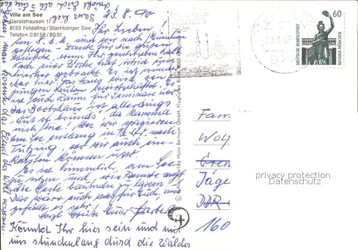 72356747 alte Postkarte Feldafing Villa am Starnberger See Fliegeraufnahme postalisch gelaufen Erhaltung siehe scans KatCode: 11110009188118