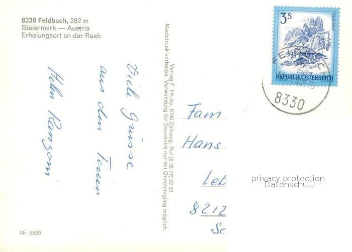 73233563 alte Postkarte Feldbach Steiermark Fliegeraufnahme an der Raab postalisch gelaufen Erhaltung siehe scans [LiesaD40] KatCode: 11390224060411