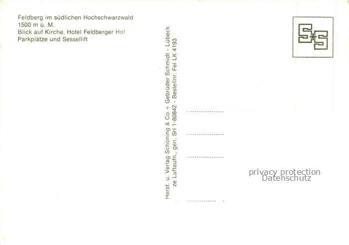 74040779 Feldberg 1450m Schwarzwald Blick auf Kirche Hotel Feldberger Hof Parkplaetze und Sessellift postalisch nicht gelaufen Fliegeraufnahme Erhaltung siehe scans [FriedD77] KatCode: 11110008315037