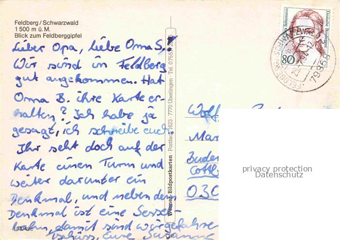 74040353 alte Postkarte Feldberg 1450m Schwarzwald Blick zum Feldberggipel postalisch gelaufen Fliegeraufnahme Erhaltung siehe scans [FriedD77] KatCode: 11110008315037