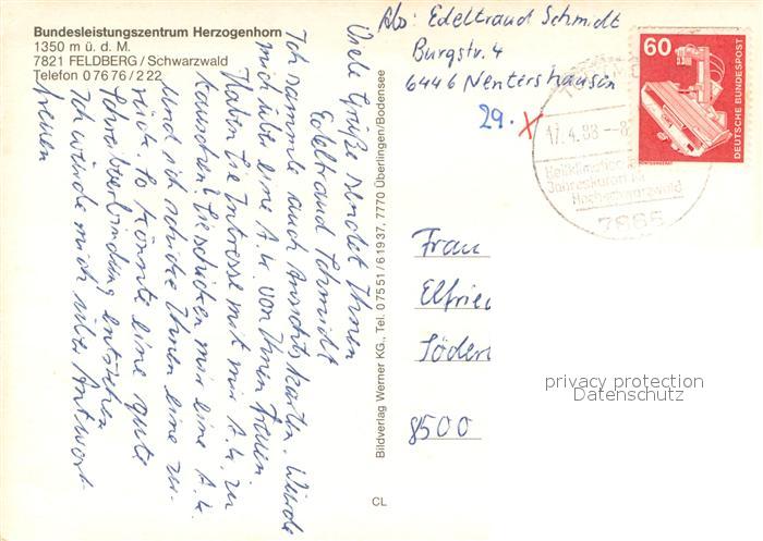 73721797 alte Postkarte Feldberg 1450m Schwarzwald Bundesleistungszentrum Herzogenhorn Gastraeume Panorama postalisch gelaufen Erhaltung siehe scans [WerneD78] KatCode: 11110008315037