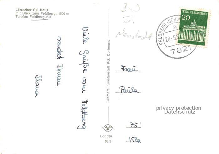 34146206 alte Postkarte Feldberg 1450m Schwarzwald BW Loerracher Ski-Haus mit Blick zum Feldberg postalisch gelaufen Erhaltung siehe scans [FriedD77] KatCode: 11110008315037