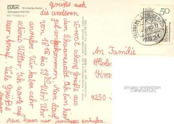 73719994 alte Postkarte Feldberg 1450m Schwarzwald DAK Kinderkurheim Schuppenhoernle Titisee postalisch gelaufen Fliegeraufnahme Erhaltung siehe scans [FriedD77] KatCode: 11110008315037
