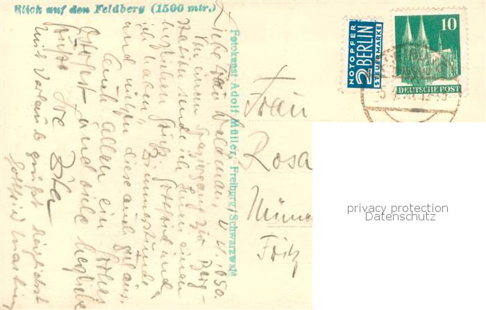73778052 alte Postkarte Feldberg 1450m Schwarzwald Feldbergblick postalisch gelaufen Erhaltung siehe scans [WerneD78] KatCode: 11110008315037