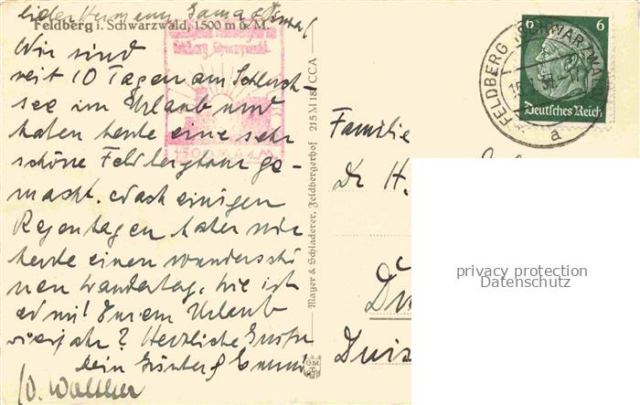 74026453 alte Postkarte Feldberg 1450m Schwarzwald Feldbergturm Fernsicht Alpenkette postalisch gelaufen Erhaltung siehe scans [FriedD77] KatCode: 11110008315037