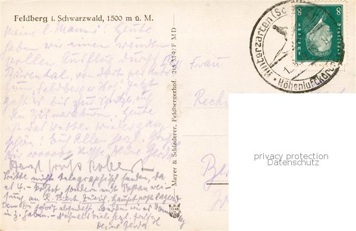 73820205 alte Postkarte Feldberg 1450m Schwarzwald Feldbergturm postalisch gelaufen Erhaltung siehe scans [WerneD78] KatCode: 11110008315037