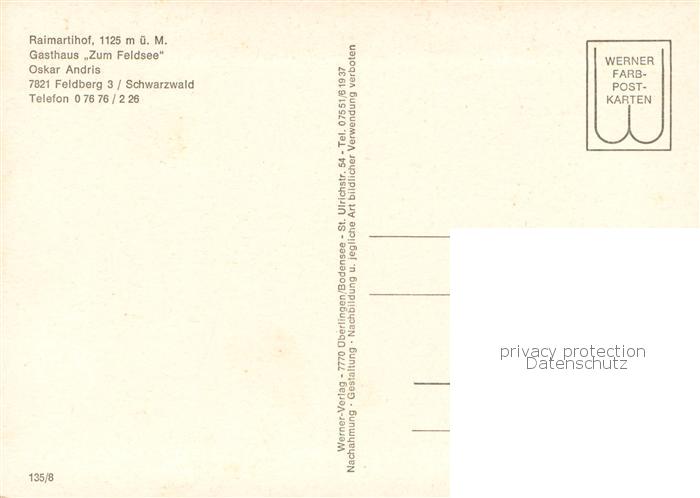 73758703 Feldberg 1450m Schwarzwald Raimartihof Gasthaus Zum Feldsee Aussenansicht m. Feldberg postalisch nicht gelaufen Erhaltung siehe scans [LiesaD40] KatCode: 11110008315037
