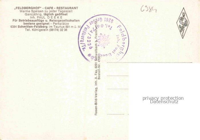 74155227 Feldberg 882m Taunus Schmitten Hessen Café Restaurant Feldberghof postalisch nicht gelaufen Erhaltung siehe scans [FriedD77] KatCode: 11110006434009