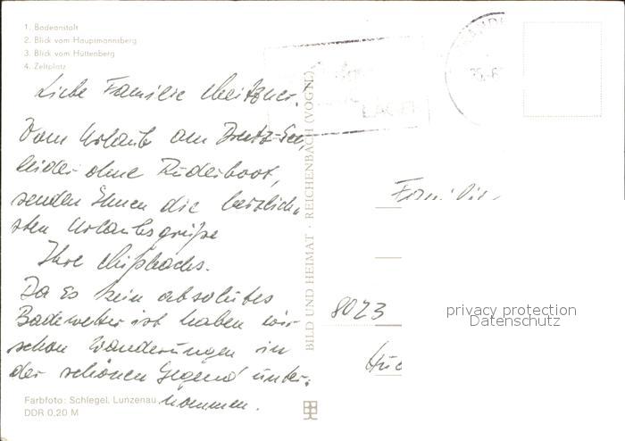 72056949 alte Postkarte Feldberg Mecklenburg Badeanstalt Hauptmannsberg Huettenberg Zeltplatz postalisch gelaufen Erhaltung siehe scans KatCode: 11110013055082