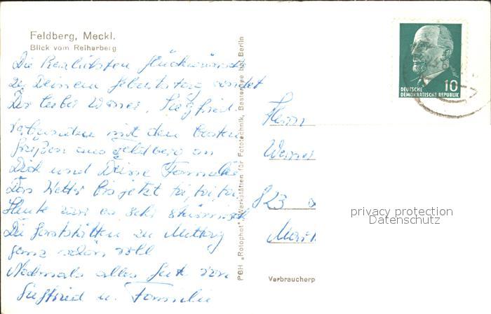72470984 alte Postkarte Feldberg Mecklenburg Blick vom Reiherberg postalisch gelaufen Erhaltung siehe scans KatCode: 11110013055082
