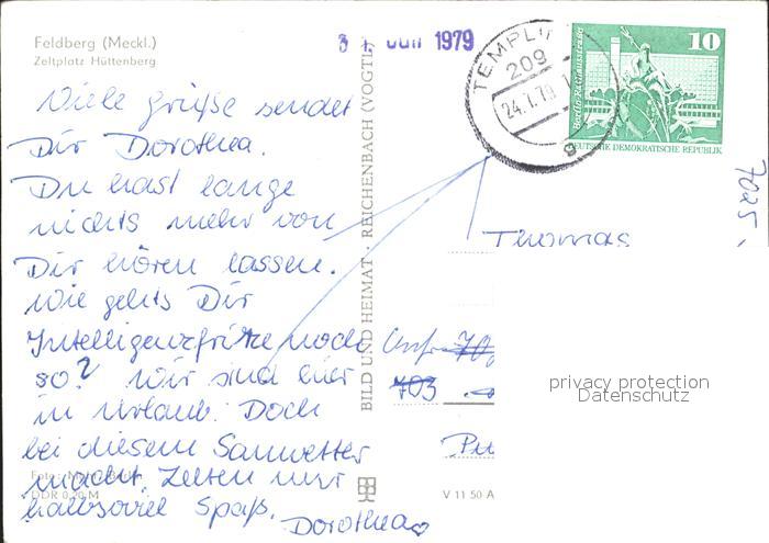72010610 alte Postkarte Feldberg Mecklenburg Camping Huettenberg postalisch gelaufen Erhaltung siehe scans KatCode: 11110013055082