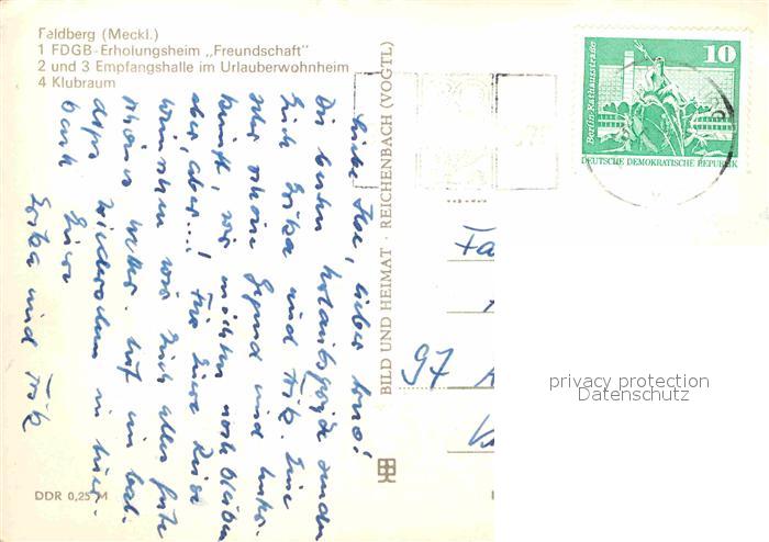 72703243 alte Postkarte Feldberg Mecklenburg Erholungsheim Freundschaft postalisch gelaufen Erhaltung siehe scans [AndreD76] KatCode: 11110013055082