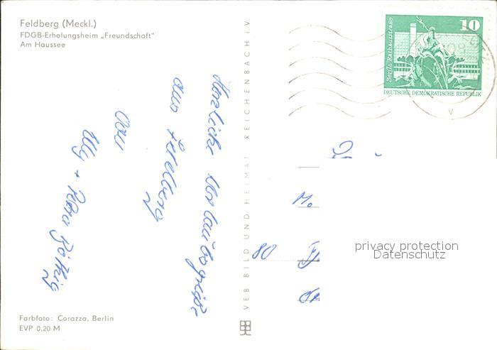 72132268 alte Postkarte Feldberg Mecklenburg Erholungsheim Freundschaft am Haussee postalisch gelaufen Erhaltung siehe scans KatCode: 11110013055082