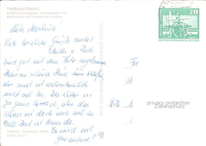 72382591 alte Postkarte Feldberg Mecklenburg Erholungsheim Freundschaft Bettenhaus Terrasse am Haussee postalisch gelaufen Erhaltung siehe scans KatCode: 11110013055082