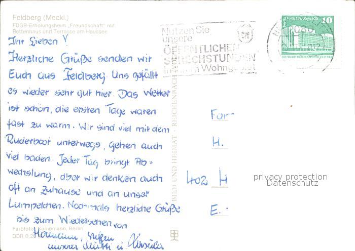 72513428 alte Postkarte Feldberg Mecklenburg Erholungsheim Freundschaft Bettenhaus postalisch gelaufen Erhaltung siehe scans KatCode: 11110013055082