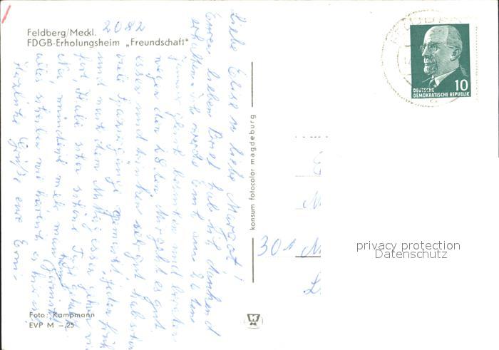 72180925 alte Postkarte Feldberg Mecklenburg FDGB Erholungsheim Freundschaft postalisch gelaufen Erhaltung siehe scans KatCode: 11110013055082
