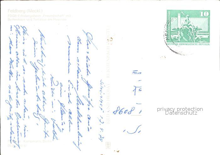 72331400 alte Postkarte Feldberg Mecklenburg FDGB-Erholungsheim Freundschaft Bettenhaus Terrasse postalisch gelaufen Erhaltung siehe scans KatCode: 11110013055082