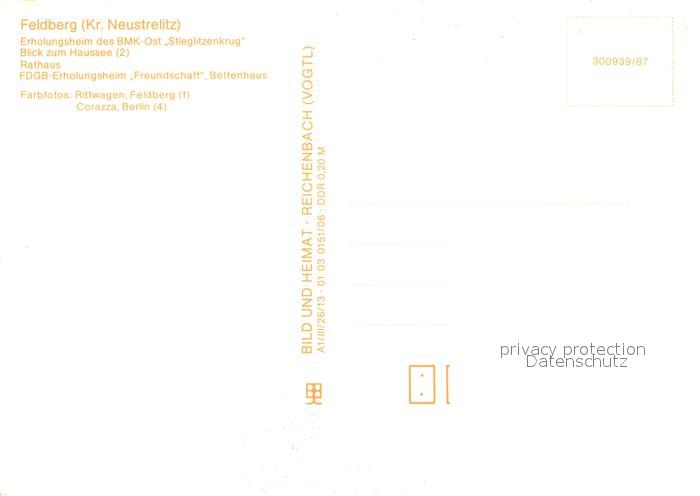 73061852 Feldberg Mecklenburg FDGB Erholungsheime Haussee Rathaus postalisch nicht gelaufen Erhaltung siehe scans [FriedD77] KatCode: 11110013055082