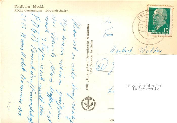 73093196 alte Postkarte Feldberg Mecklenburg FDGB Ferienheim Freundschaft postalisch gelaufen Erhaltung siehe scans [LiesaD40] KatCode: 11110013055082