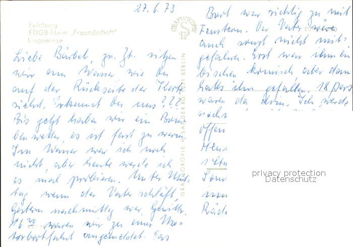 72123426 Feldberg Mecklenburg FDGB Heim Freundschaft Badestelle postalisch nicht gelaufen Erhaltung siehe scans KatCode: 11110013055082