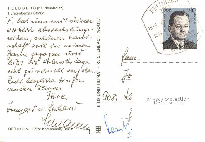 72681502 alte Postkarte Feldberg Mecklenburg Fuerstenberger Strasse postalisch gelaufen Erhaltung siehe scans [LiesaD40] KatCode: 11110013055082