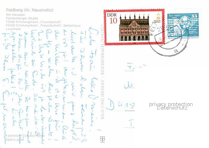 72764494 alte Postkarte Feldberg Mecklenburg Haussee Fuerstenberger Strasse Erholungsheim Freundschaft postalisch gelaufen Erhaltung siehe scans [AndreD76] KatCode: 11110013055082