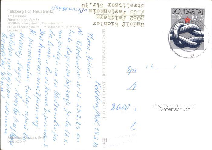 72323119 alte Postkarte Feldberg Mecklenburg Haussee Fuerstenberger Strasse Erholungsheime Luzinhalle postalisch gelaufen Erhaltung siehe scans KatCode: 11110013055082