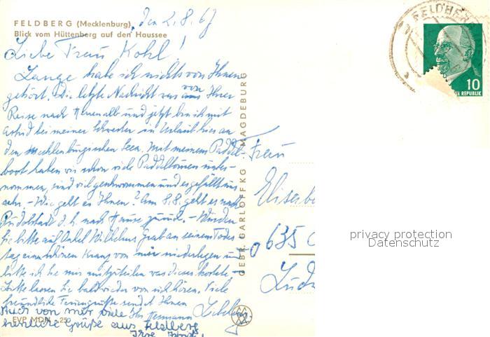 73155853 alte Postkarte Feldberg Mecklenburg Panorama Blick vom Huettenberg auf den Haussee postalisch gelaufen Erhaltung siehe scans [FriedD77] KatCode: 11110013055082