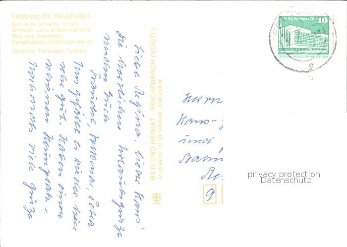 72373088 alte Postkarte Feldberg Mecklenburg Strelitzer Strasse Schmaler Luzin Erddammbruecke Ziegenberg Campingplatz Feldberger Huette postalisch gelaufen Erhaltung siehe scans KatCode: 11110013055082