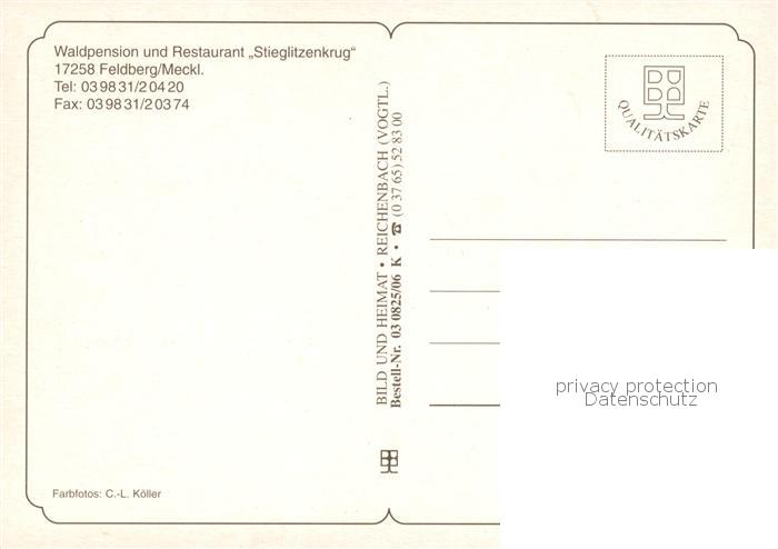 73857477 Feldberg Mecklenburg Waldpension Restaurant Stieglitzenkrug Zimmer Seepartie postalisch nicht gelaufen Erhaltung siehe scans [WerneD78] KatCode: 11110013055082