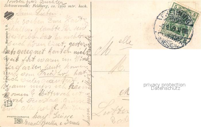 43507931 alte Postkarte Feldberg Schwarzwald postalisch gelaufen Erhaltung siehe scans [LiesaD40] KatCode: 11110008315037