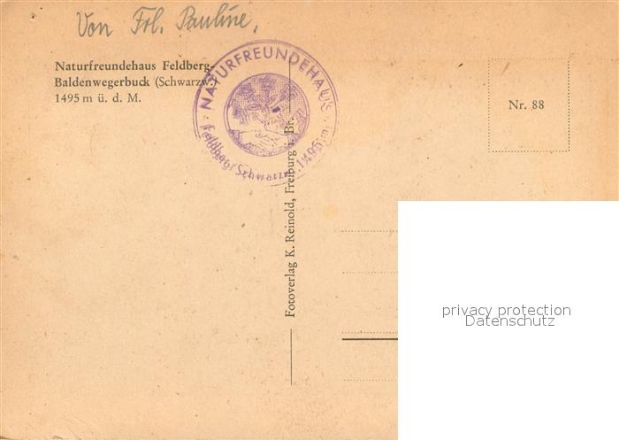 73623593 Feldberg Schwarzwald Baldenwegerbuck Naturfreundehaus postalisch nicht gelaufen Erhaltung siehe scans [WerneD78] KatCode: 11110008315037